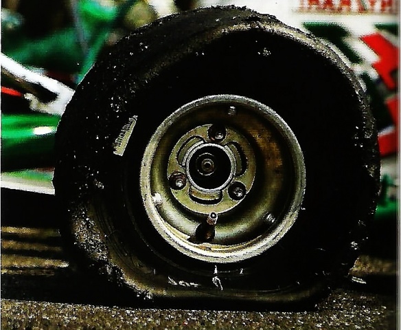 Los neumáticos evidentemente habrán perdido enormemente sus propiedades, dando por asumido esto, giraremos las ruedas para verificar que los rodamientos cumplen su función correctamente y después de haber metido de nuevo presión al neumático, comprobaremos que no hay pérdida de aire a través de las pequeñas gomas de los tornillos antidesllantamiento.